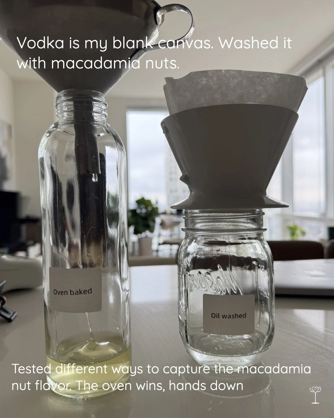 Macadamia oils are more delicate, and their flavor degrades faster than most oils I’ve used in the past. Here’s a method I developed to preserve the flavor for at least three-five days (lessons from everdeen cocktail)