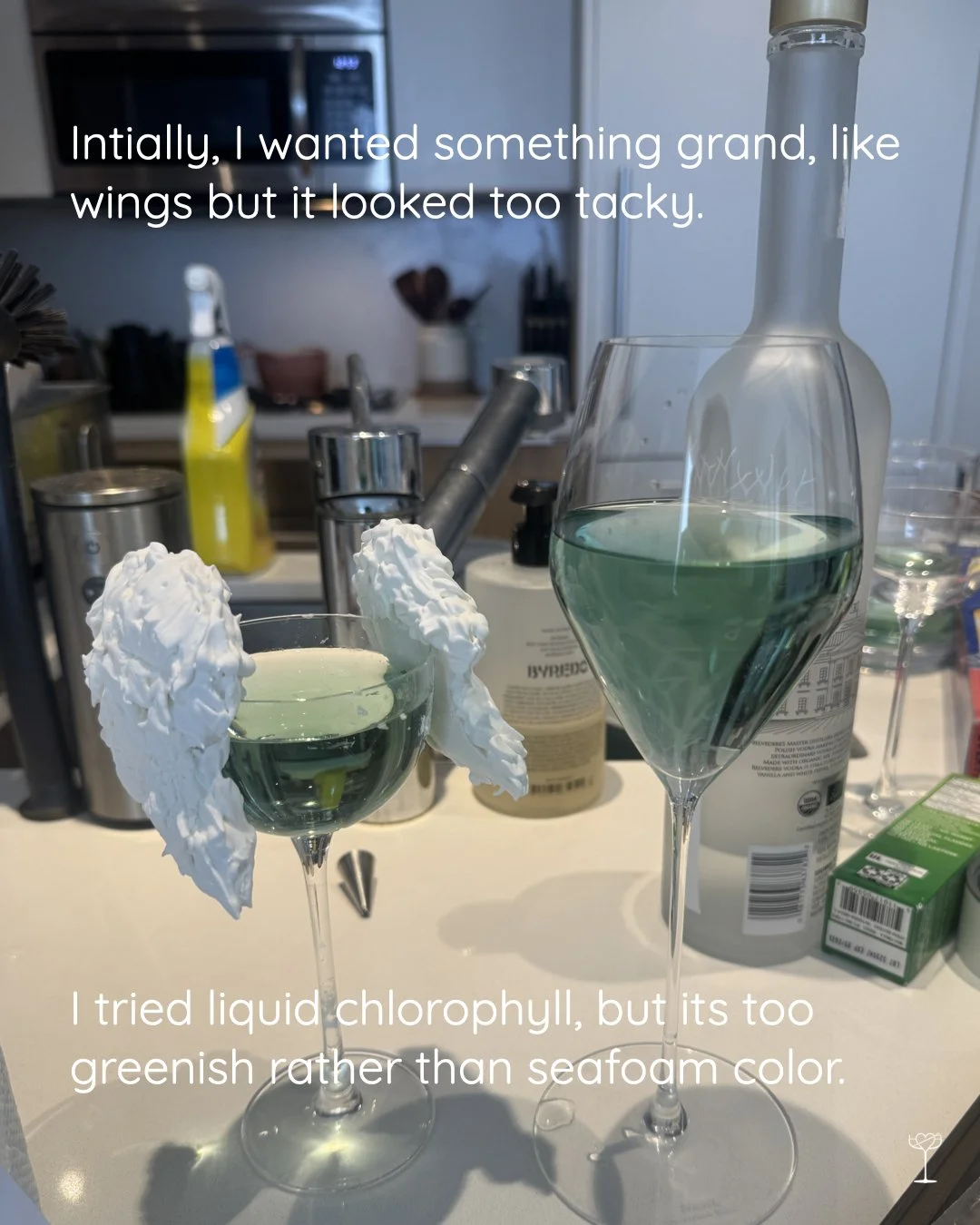I also felt like cheating since it’s the first time I’ve ever used food coloring in my drinks. But I tried other options, like liquid chlorophyll, it’s too greenish rather than the seafoam color I wanted. To achieve the artistic vision without compromising the flavor, a tiny drop of blue food coloring was needed.