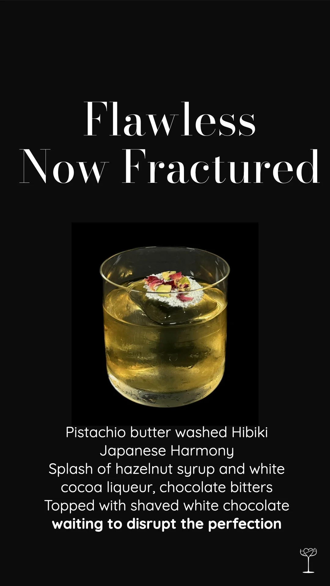 The concept of this drink involves using one of my favorite whiskeys @suntorywhisky_hibiki which is flawless on its own. But what if we wash it with pistachio butter, then add some hazelnut syrup to further bring out the nuttiness? Then we pair the nuttiness with some elements of chocolate. It doesn’t sound too bad, right? Is less more, or do you kind of just have to live it to find out?