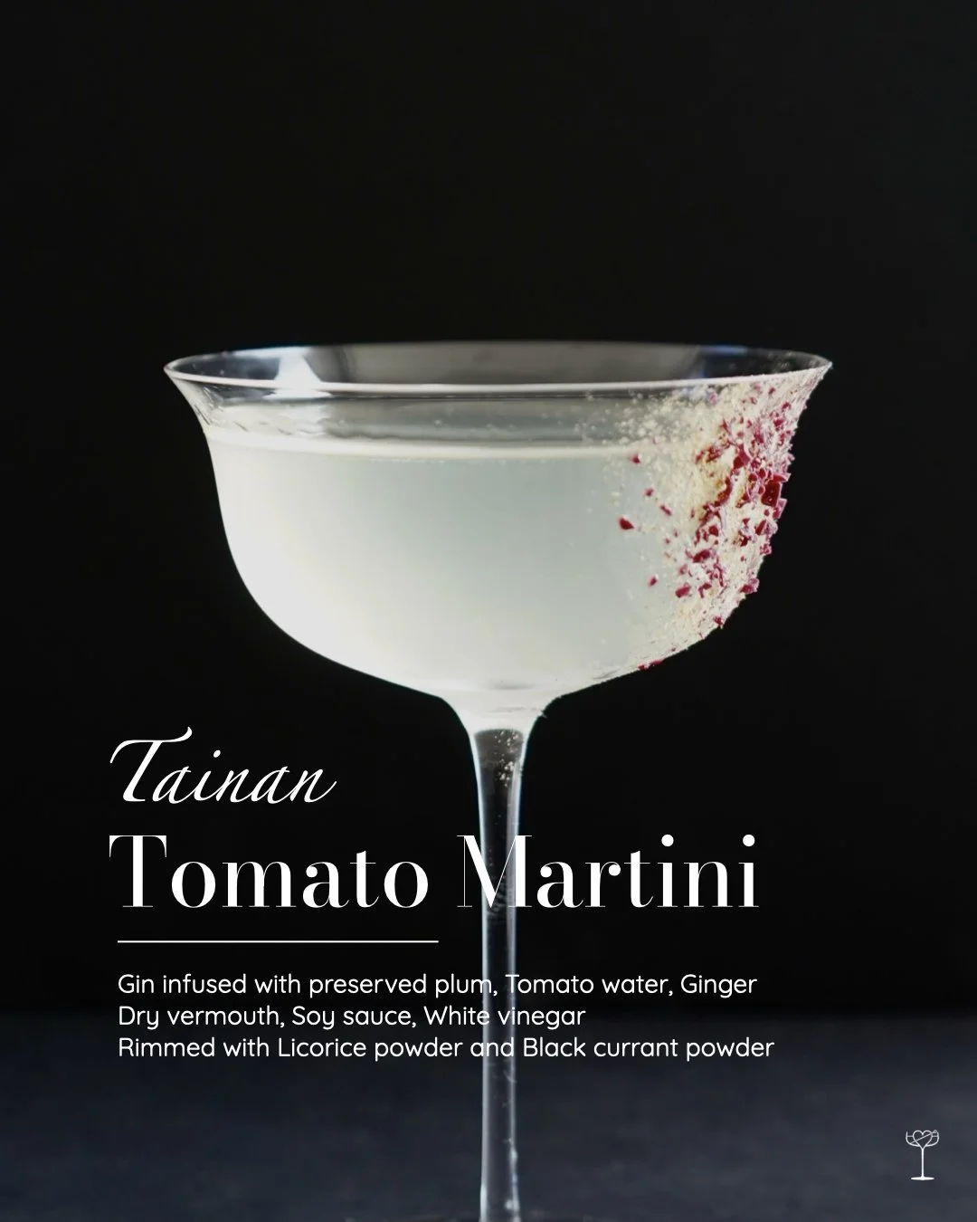 I grew up in Tainan (a city in the south of Taiwan), and with Chinese New Year this week, it makes me miss all the unique flavors you can only find there 🍅 This is a Tomato Martini inspired by a popular spot called 莉莉水果店, which serves a unique tomato dish with a dipping sauce for fresh tomatoes. The sauce is a mix of soy paste, fresh ginger, sugar, and licorice powder.